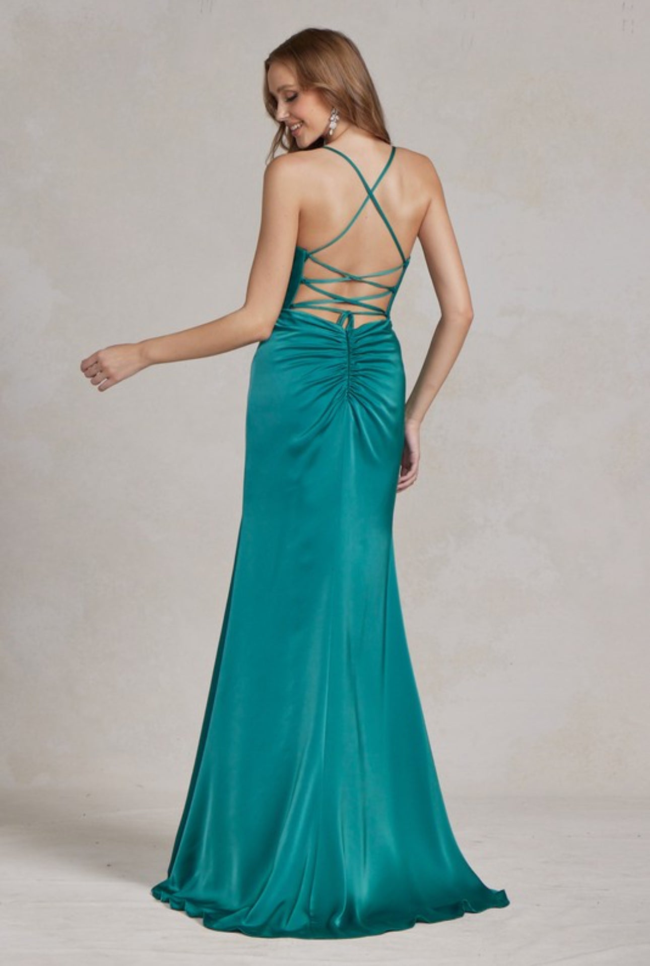 Emerald Green Satin Fitted Gown